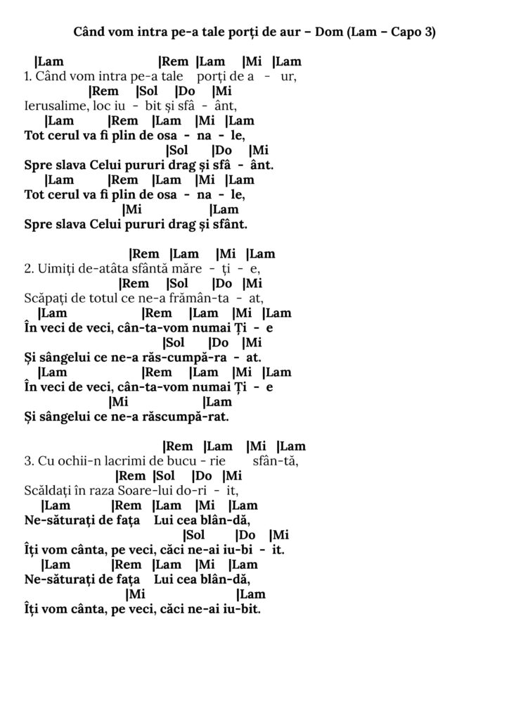 Când vom intra pe-a tale porți de aur