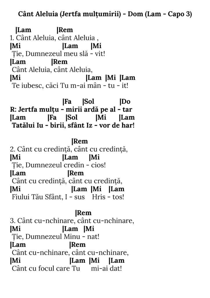 Cânt Aleluia (Jertfa mulțumirii)