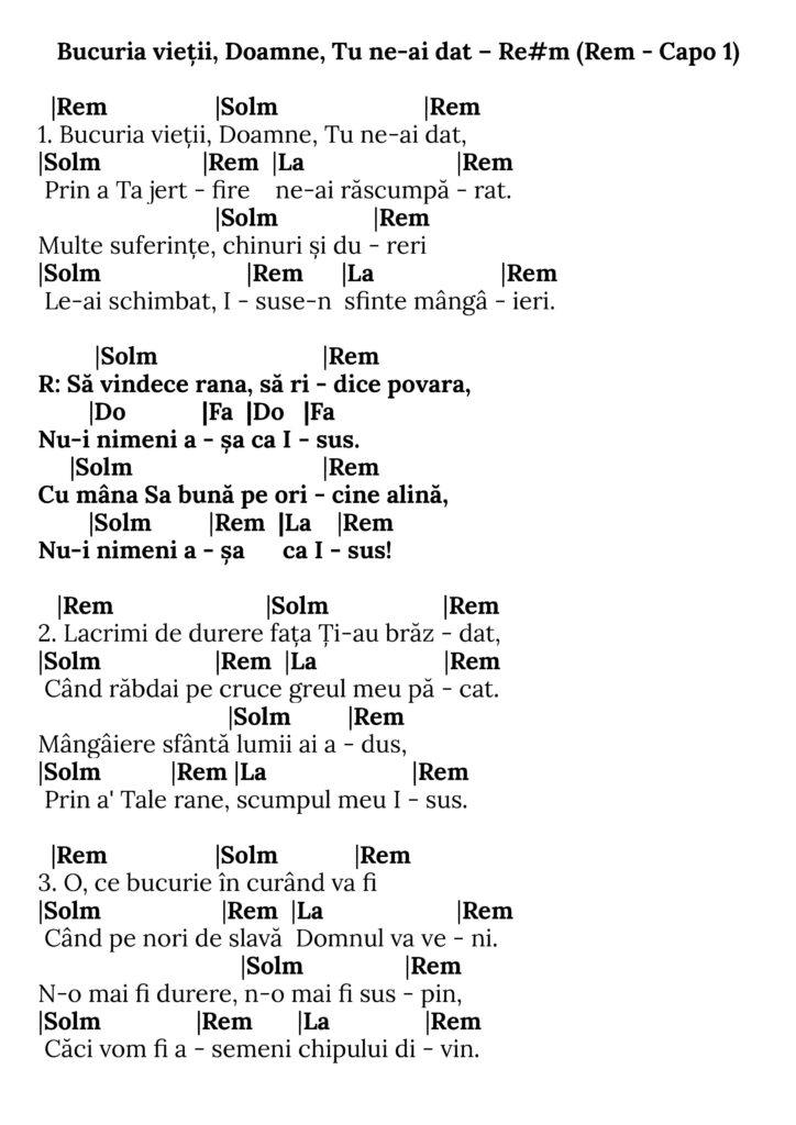 Bucuria vieții, Doamne, Tu ne-ai dat